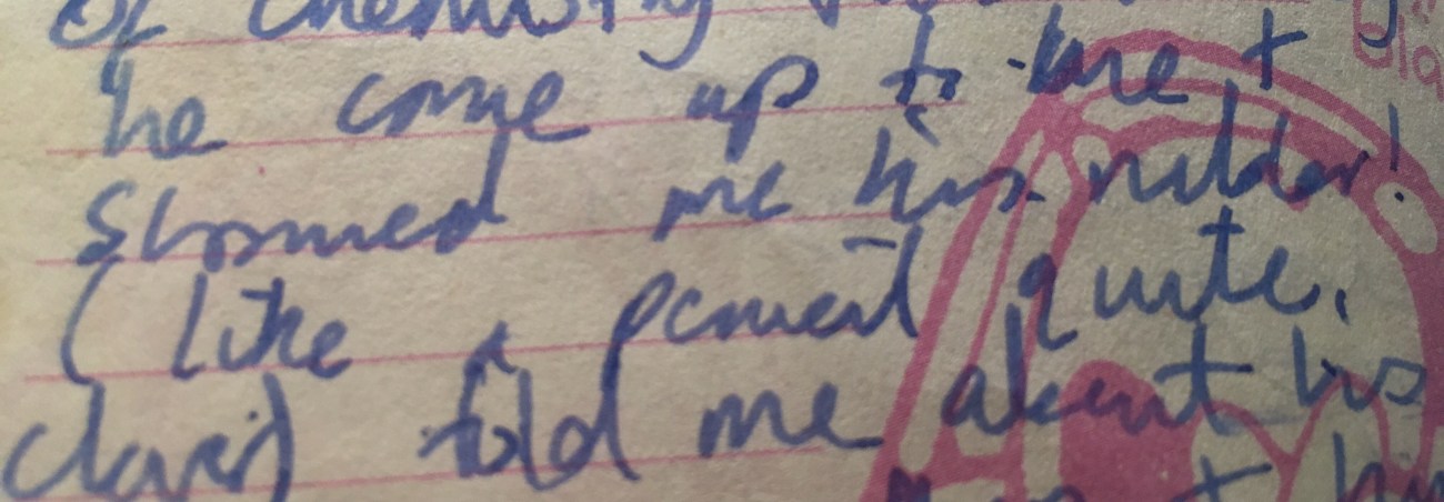 Today funny. Wrestling tournament between boys! Been speaking to Grayson quite a lot! Not being horrible but in a funny way he kind of scares me. I’m there on my own now and again and he just starts talking To me. Today he did this outside both sciences. In biology was on a computer he sat on computer next to us. We started having a long conversation. We spoke about New York, journeys etc. Outside chemistry he showed me his (I think the word is ruler maybe? I had no idea photo below – maybe you can work it out I can’t actually read the rest if this page as can’t read my writing! )