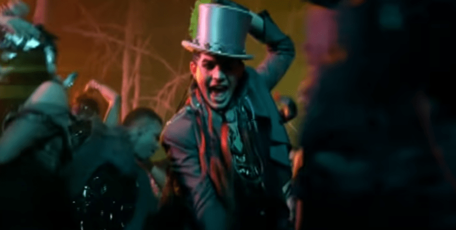 Another thing that I really like about this video is that whenever Adam has a costume change the grading and the style of editing slightly changes which subtly yet effectively really highlight the costumes and the personalities that are being portrayed. For example when Adam comes on in the hat and the heavy makeup the grading slightly darkens again and the highlight is on different bold colours again the background.