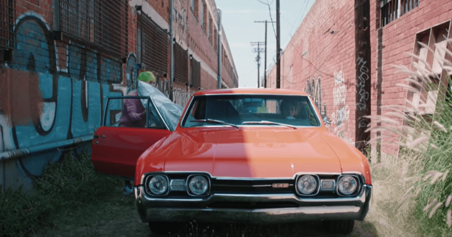 The introduction of this video is really interesting as it sort of sets up an eighties sort of theme to the video, it has slow edits and a lot of panning shots to sort of create the ideology of this car and the ideologic world that this audience is about to dive into. The slow pan shots of the car creates this automatic portrayal that Awsten is quoted above stating that everyone has this perspective and the colour grades of the reds and greens intertwined create this sort of dreamlike stance to the video.