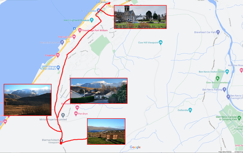 Over the Christmas period, I went to Fort William and in that time walked just under 90 miles. Whilst I didn’t climb Ben Nevis, I did a lot of walking and kept a diary of a few of them and give you an insight into what you can get up to in that area of the highlands. If you don’t want to go to the areas near Ben Nevis, there are some fantastic walks that focus more on the town areas that can still welcome you to some amazing views and sights. Today’s walk takes you from Fort William to the viewing point Blarmacfoldach.