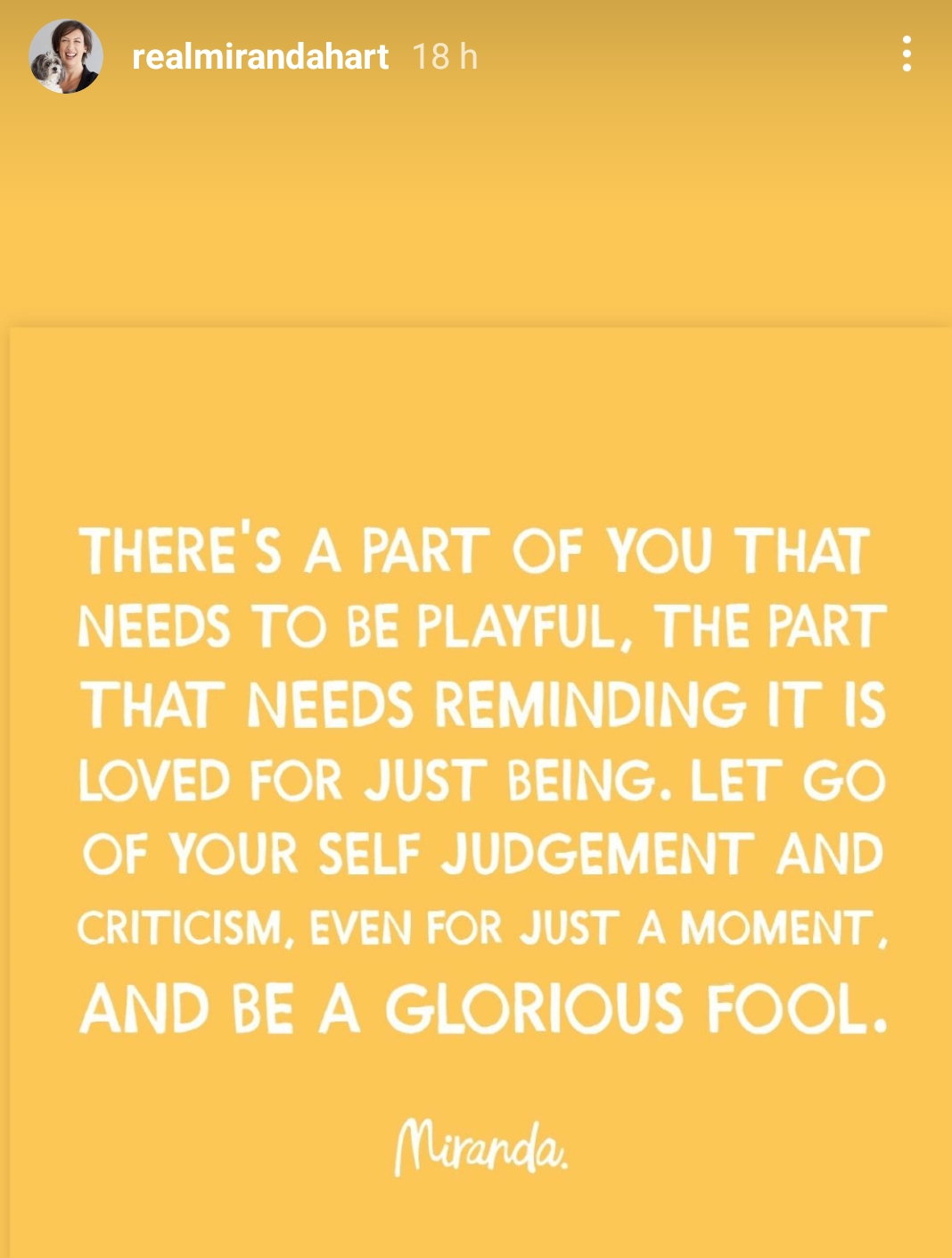 A while ago I came across this quote on Miranda Hart’s Instagram feed and I thought it was such a great sentence that I have been keeping it safe to talk about on this feature – then I forgot about it! Well, today is that day that we look at this glorious quote from Miranda Hart that may help you with improv today.